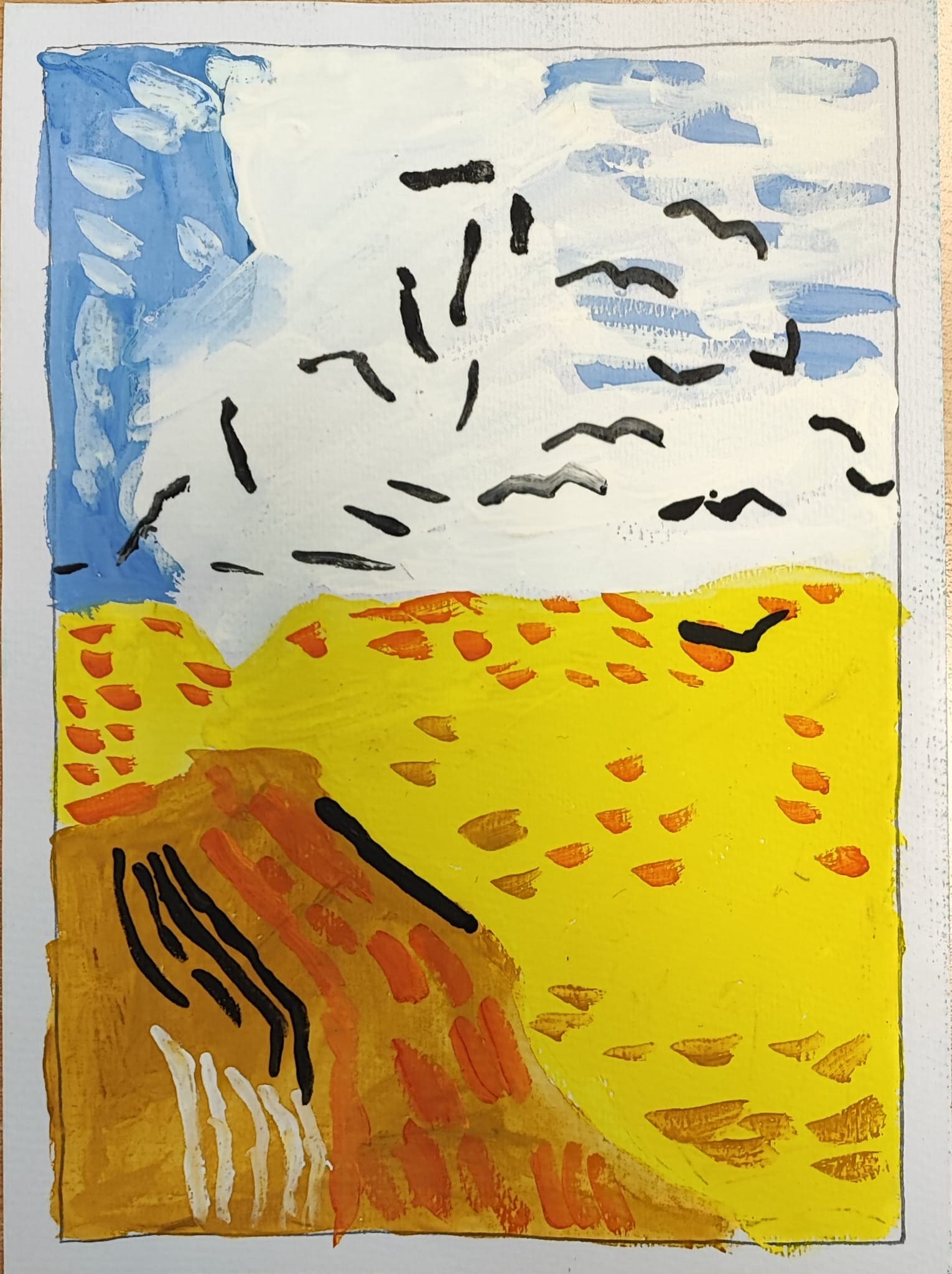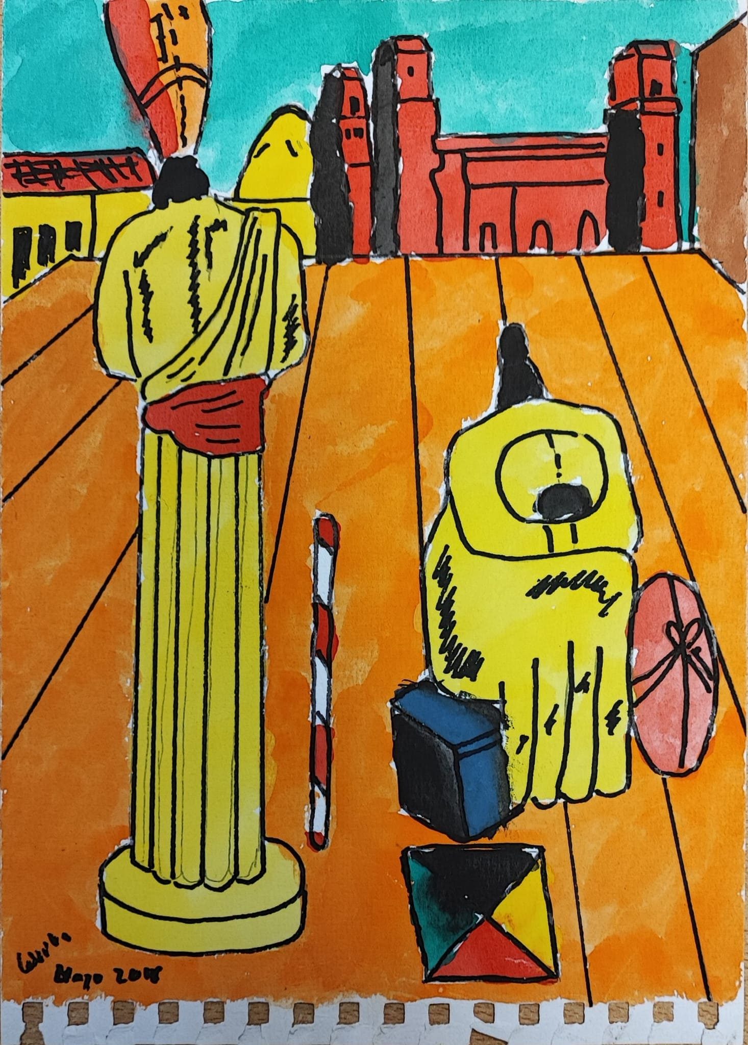 Fiel a su estilo, homenajea a artistas como Giorgio de Chirico, Matisse, Van Gogh o Edward Munch, rompiendo las líneas y dándole relevancia a la forma a través de grandes manchas de color.