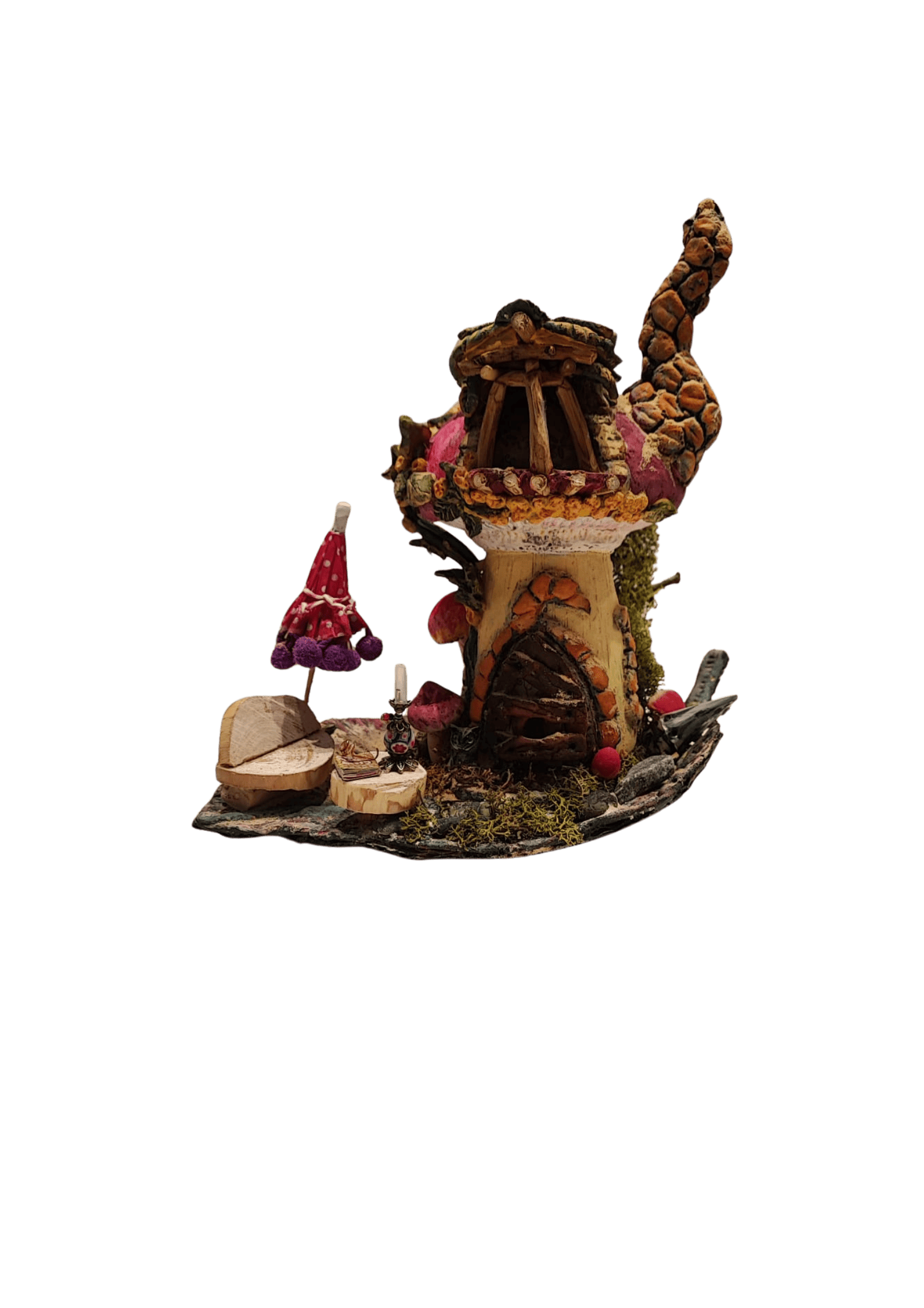 Ella crea paisajes mágicos de la realidad que se encuentra en su día a día, cajas de música y tallas de madera, casitas del bosque …