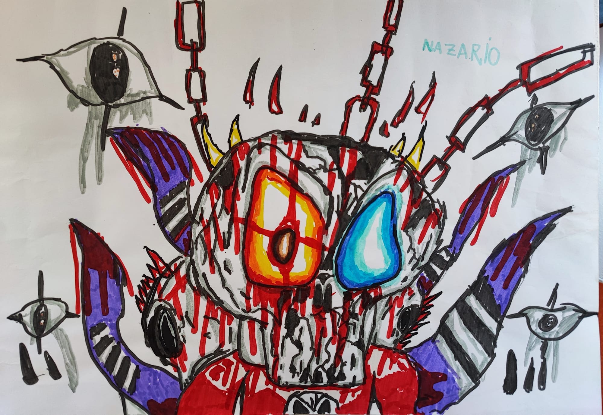 A Nazario le gusta el azul clarito, el helado de sabor galletas y comer hamburguesas. Le gusta mucho el color blanco y no tanto el negro, aunque en sus dibujos lo utiliza mucho.